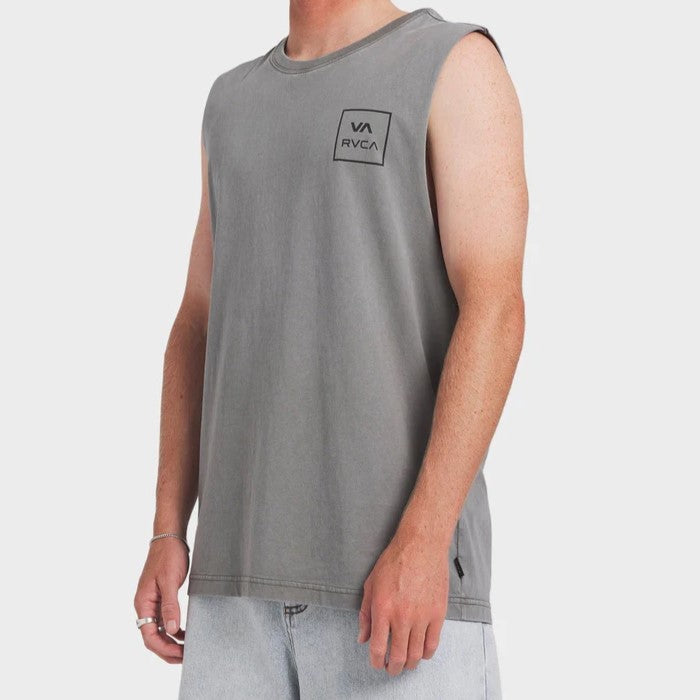 REP RVCA HARD IN THE VA ALL THE WAYS MUSCLE BY RVCA. THIS MEN’S REGULAR FIT MUSCLE HAS A BOLD FRONT AND BACK SCREEN PRINTED ON A SOFT 100% ORGANIC COTTON JERSEY. ALSO LOOK FOR A RAW EDGE SLEEVE OPENING, SCREENED INSIDE NECK FOR ADDITIONAL COMFORT AND IS WASHED FOR EXTRA SOFTNESS.