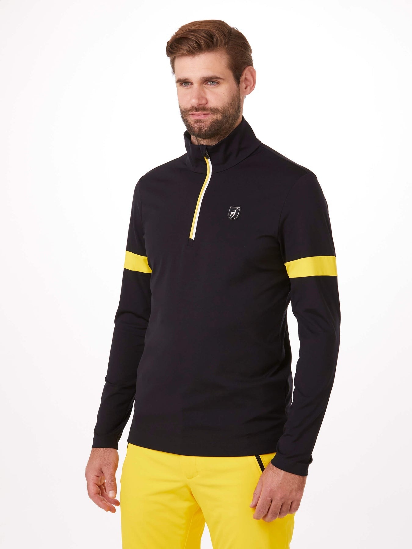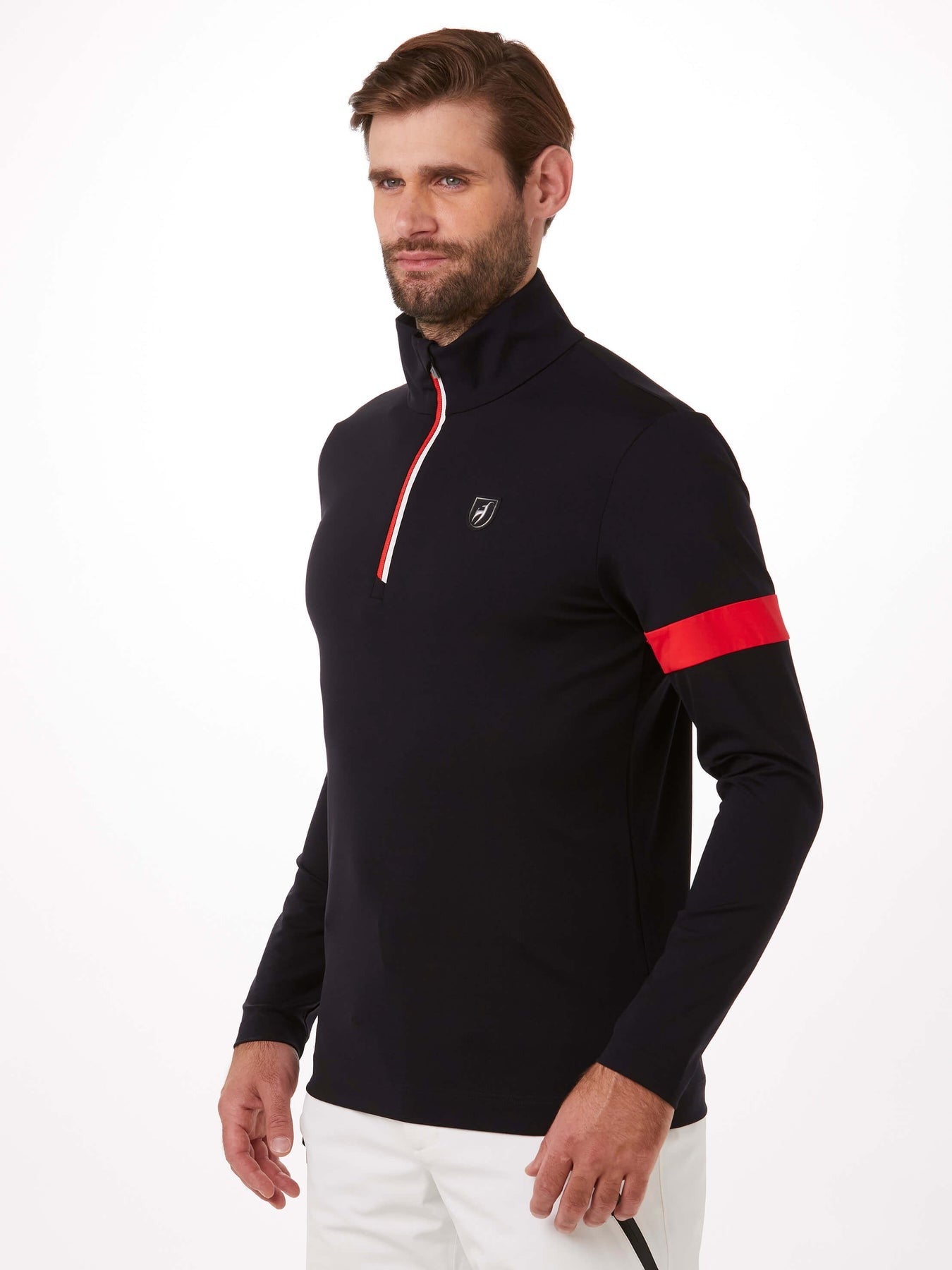 The BORIS men’s first layer stands out with its high elasticity The functional fabric, made in France, is light, breathable, and quick-drying. The colour of the YKK zipper is perfectly matched to the contrast stripes on the sleeves. A printed Toni Sailer logo on the back and the 3D logo on the chest complete the design of this baselayer.