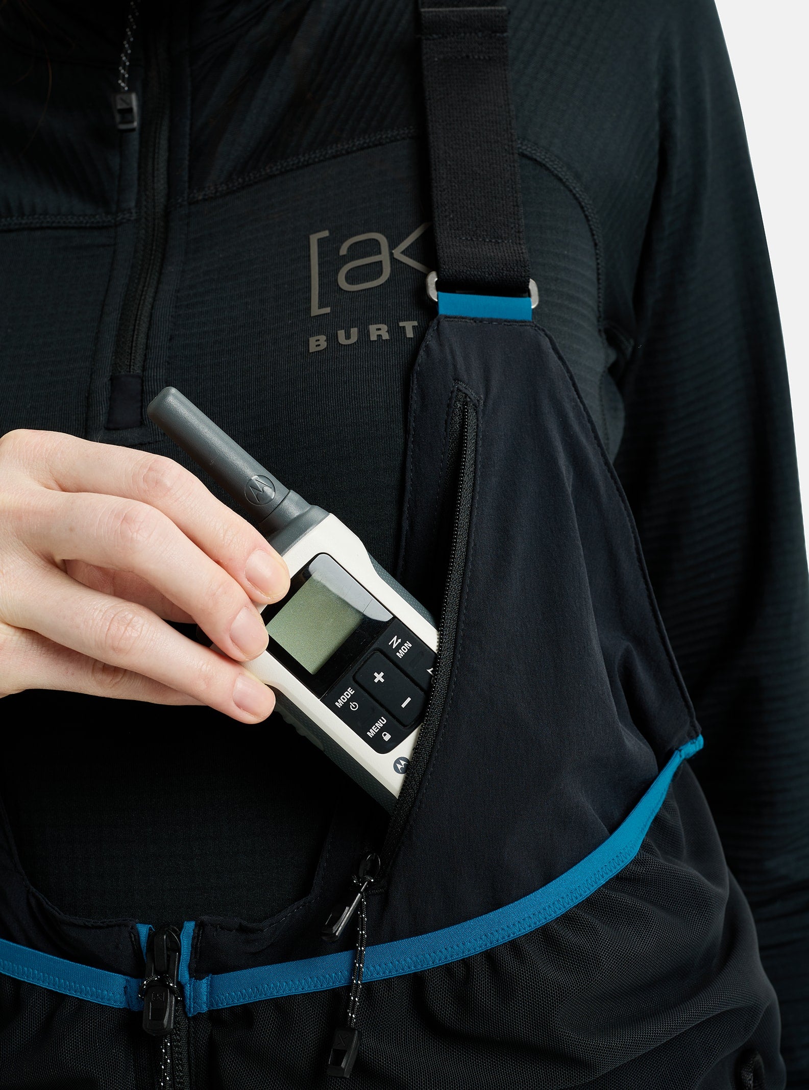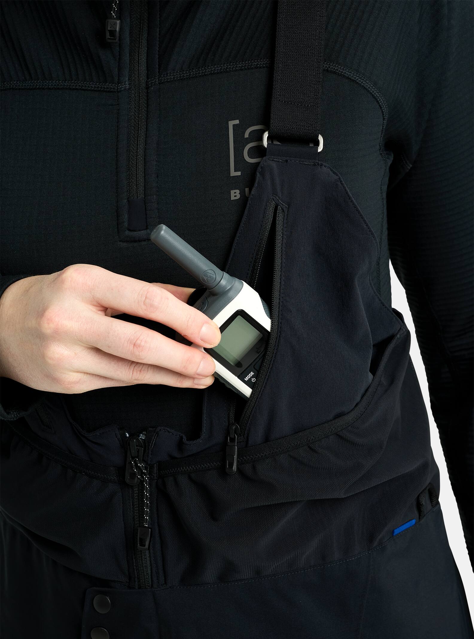 • The Right Pockets: A mix of chest and thigh pockets to keep all your stuff secure and within reach including a beacon-friendly power mesh sleeve with security loop inside the right and left thigh pockets, external chest power mesh dump pockets, zippered chest pockets with media port and zippered handwarmer pockets with an expandable bellow.