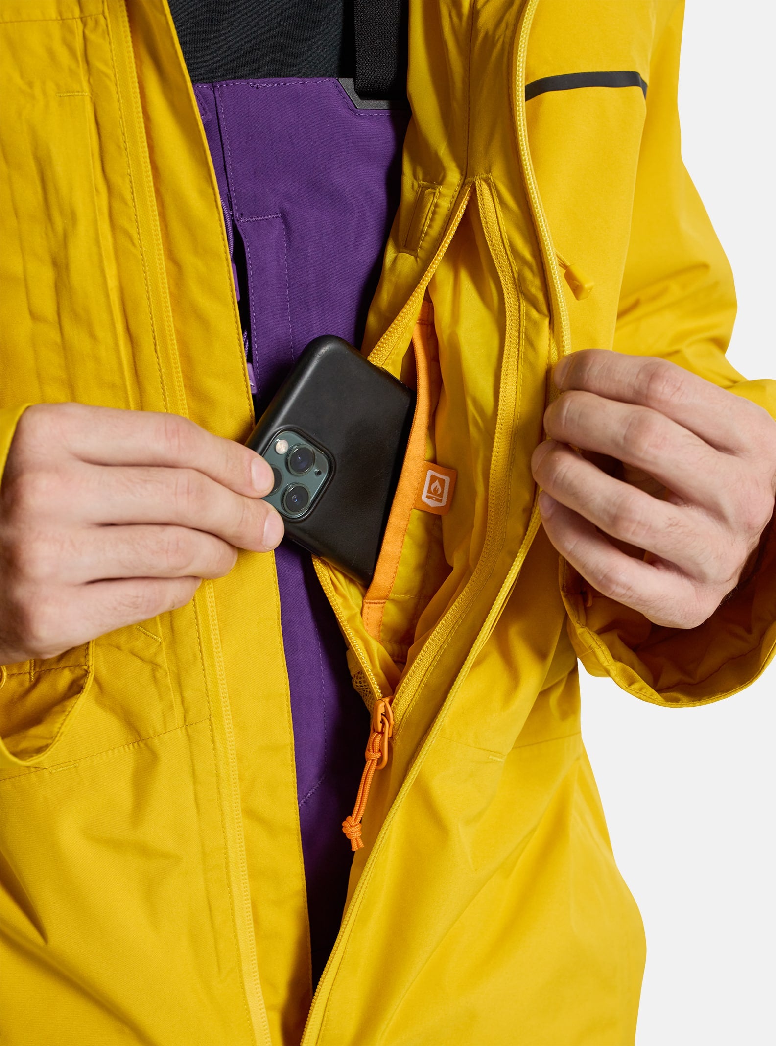 Stormproof GUARANTEED TO KEEP YOU DRYâ„¢ GORE-TEX keeps you on the move in all weather, period. It's a Warm Dry World Inside Cold chairlift rides are a breeze thanks to lightweight and breathable ThermacoreECO synthetic insulation to keep you warm. Small Details Make a Big Difference Rider-designed details like zip vents, water-resistant zippers, and a sherpa fleece-lined collar add up to being warmer, dryer, and more comfortable. The Right Pockets We've got you covered with interior power mesh dump pockets, an insulated phone pocket, and a dedicated pass pocket. Low Environmental Impact It's bluesign approved and the insulation uses at least 90% recycled fibers for a reduced eco footprint.